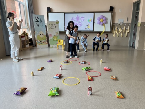 趣味游戲輪番登場(chǎng),瞬間點(diǎn)燃了孩子們的熱情。“我套中啦!我是套圈大王!”孩子們手持套圈,眼神專(zhuān)注,屏氣凝神地瞄準(zhǔn)目標(biāo),輕輕拋出套圈,當(dāng)套圈穩(wěn)穩(wěn)套住零食的那一刻,歡呼聲和掌聲便響成一片。隨著音樂(lè)響起,孩子們圍著凳子快速轉(zhuǎn)圈,眼睛緊緊盯著眼前的“寶座”。當(dāng)音樂(lè)戛然而止的瞬間,大家迅速?zèng)_向凳子,臉上依然洋溢著燦爛的笑容。這些趣味游戲不僅鍛煉了孩子們的身體協(xié)調(diào)性和反應(yīng)能力,更讓他們?cè)跉g笑與挑戰(zhàn)中收獲了滿滿的快樂(lè)。