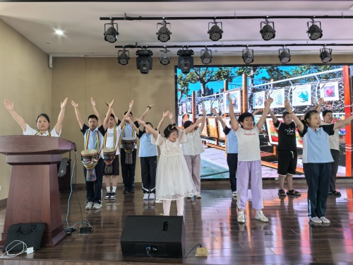 在最后的彩排現(xiàn)場(chǎng),孩子們?nèi)褙炞?,跟著音?lè)的節(jié)奏,一遍又一遍地重復(fù)著每一個(gè)動(dòng)作、每一句歌詞。老師們站在臺(tái)下,眼神緊緊關(guān)注跟隨,引導(dǎo)孩子們“表情微笑,非常漂亮!”“保持隊(duì)形,互相保護(hù)好身邊的同學(xué)”。