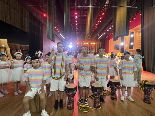 演出當(dāng)天,陽(yáng)光透過(guò)窗戶灑在孩子們期待又緊張的笑臉上。老師和孩子們?cè)缭绲販?zhǔn)備好,整裝待發(fā)!