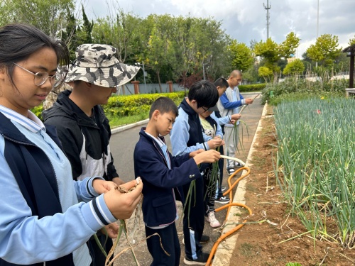 同學(xué)們在陽光下快樂采摘,收獲滿滿
